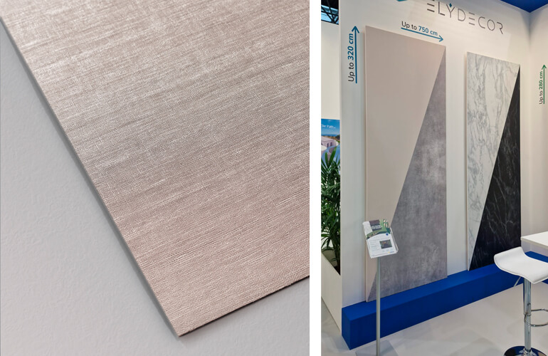 Ces nouveaux produits étoffent la gamme de produits pour les intérieurs, en proposant sur le marché non seulement des peaux polyesters PRFV, avec des surfaces lisses, mais aussi des produits 3D avec un grand potentiel d'expression. Ils sont de hauteur pleine, de taille 260x800 cm, et donc adaptés à la paroi toute entière, du sol au plafond. Les panneaux sont entièrement décorés, finis et prêts à l'emploi sans nécessiter de papiers décoratifs supplémentaires, ce qui permet de réaliser des économies effectives au niveau des étapes de production et de la main-d’œuvre.